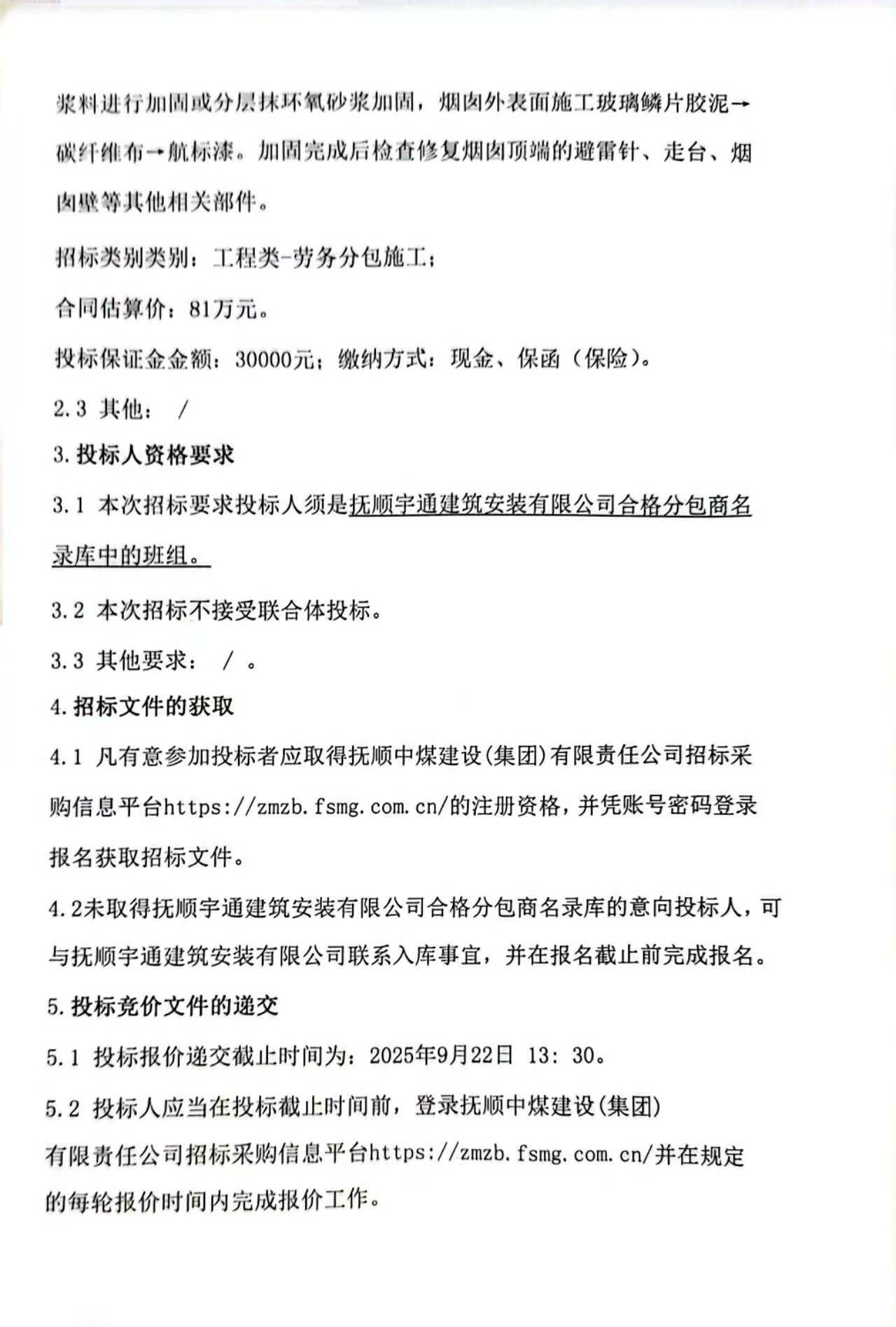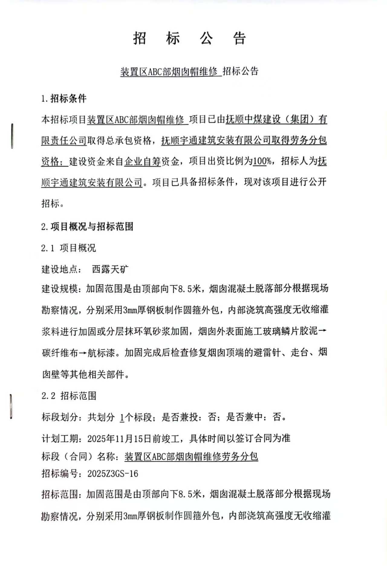 装置区ABC部烟囱帽维修招标公告(9月18日)