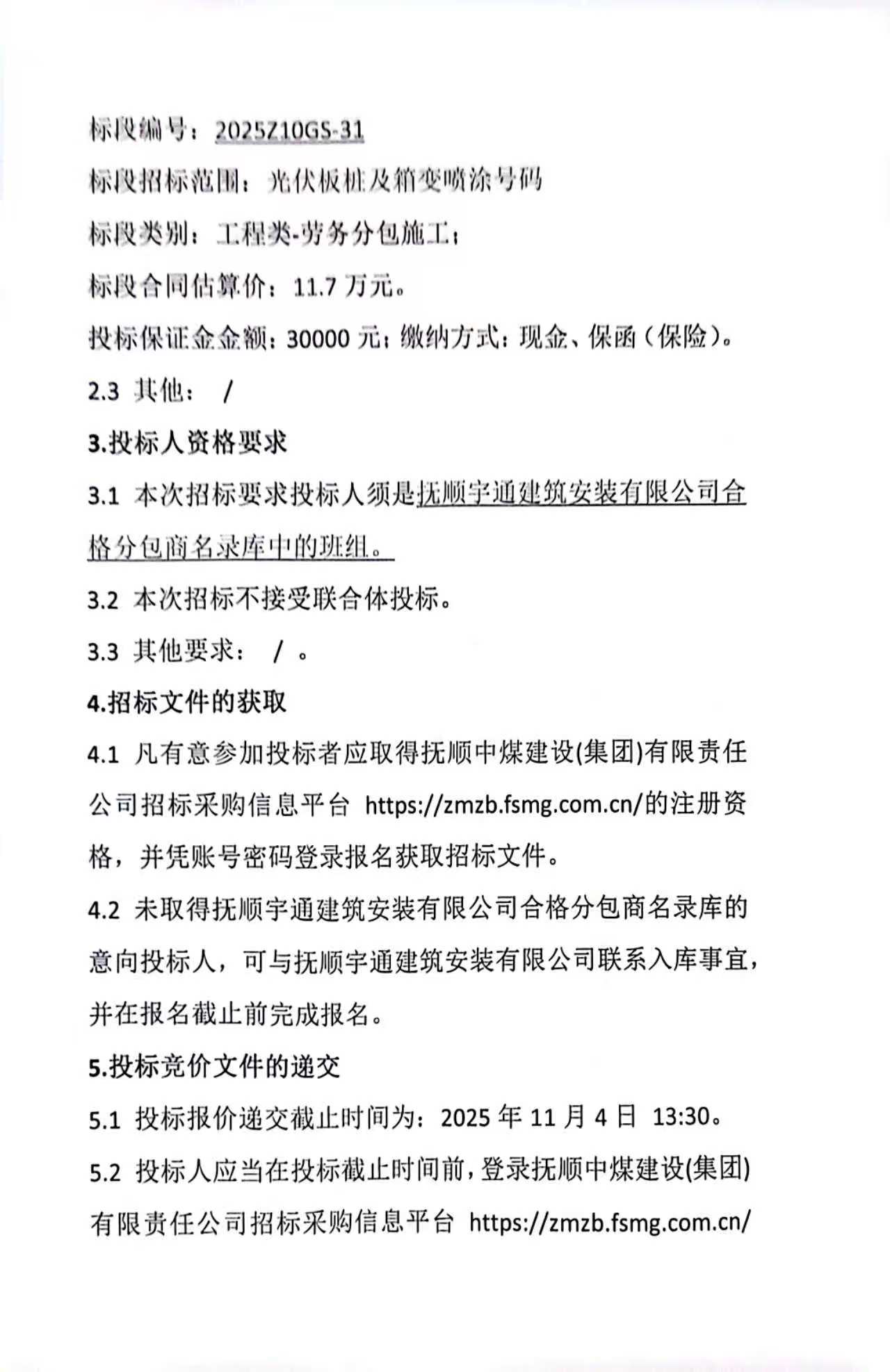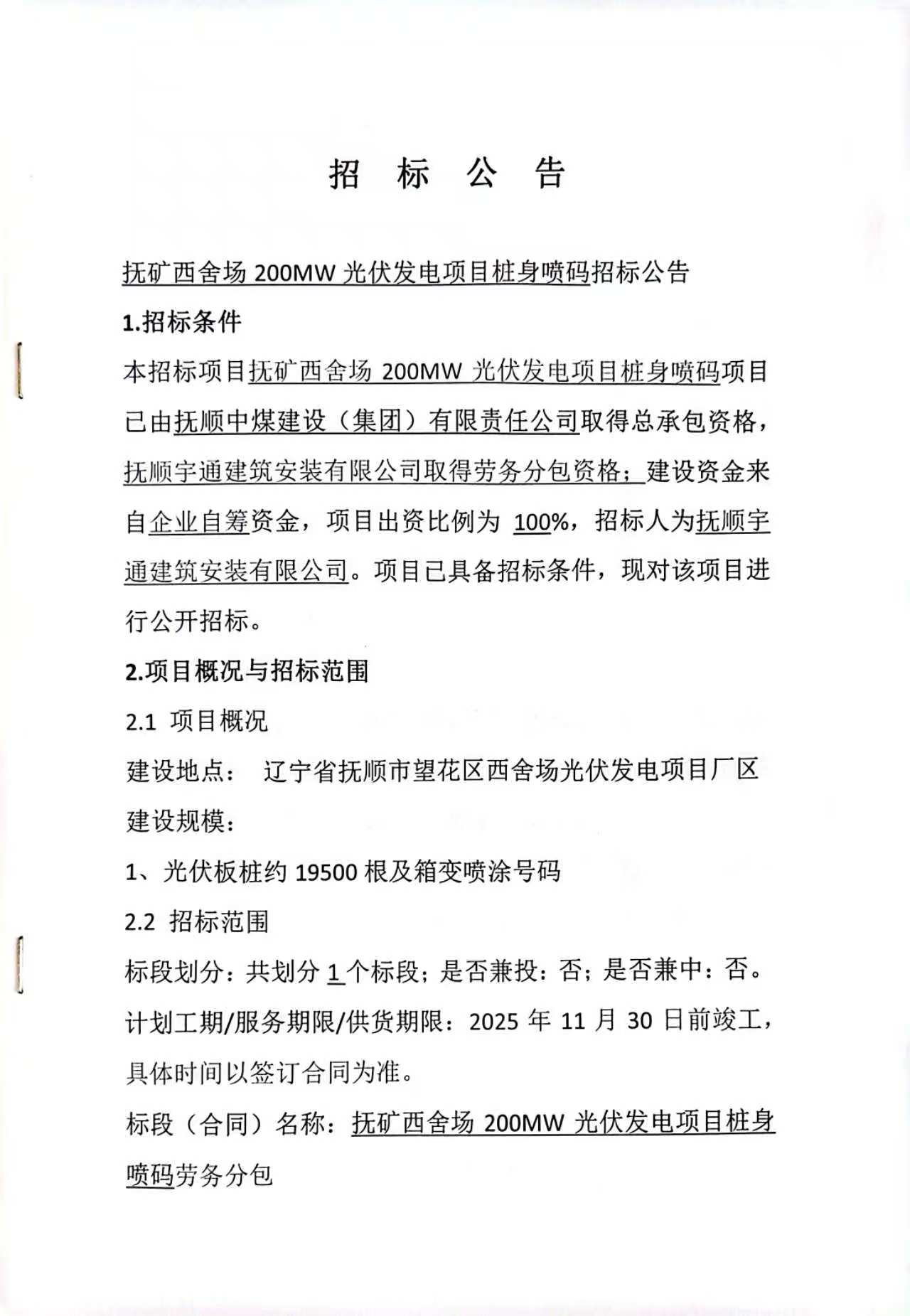 抚矿西舍场200MW光伏发电项目桩身喷码(10月30日)