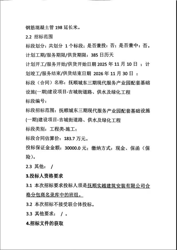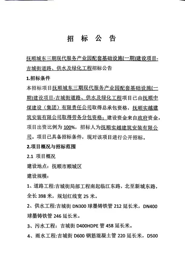 抚顺城东三期现代服务产业园配套基础设施(一期)建设项目-吉城街道路、供水及绿化工程